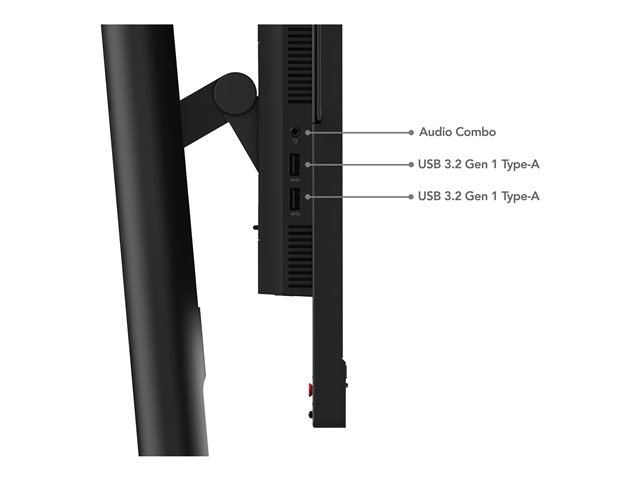 | Gränssnitt | HDMI DisplayPort 1.4 DisplayPort-utmatning USB-C 3.2 Gen 1 upstream/DisplayPort 1.4 Alt Mode (ström upp till 90W) 4 x USB 3.2 Gen 1 nedströms LAN (RJ-45) Hörlurs-/mikrofonkontakt |