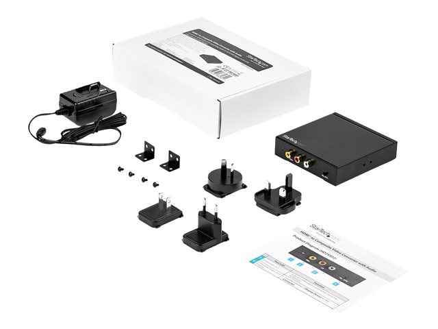 Denna HDMI till RCA-konverterarbox med ljud omvandlar en HDMI-videokälla (med bifogat ljud) så att det fungerar med analoga RCA-komposit video-TV-apparater och skärmar, i både NTSC- och PAL-system. Kompromisslös kvalitet Denna HDMI till kompositvideo-konverteraren har funktioner som säkerställer högsta kvalitet på utdatabilden, som brusreducering, bildfrekvenskonvertering och anpassningsbar kontrastförbättring. Med stöd för högupplösta ingångsupplösningar på upp till 1080p kan den här RCA-adaptern konvertera din HDMI-signal till kompositvideo och ljud och ändå ge en kristallklar bild. Ultimat bekvämlighet Denna lätta kompositadapter är kompakt och väldigt portabel, så du kan använda den praktiskt taget var som helst. Denna mångsidiga RCA-konverterare med stöd för flera olika HDTV- och PC-indataupplösningar är den perfekta lösningen för att koppla ihop nyare enheter med dina befintliga äldre skärmar. Möjligheten att konvertera och använda din nya HDMI-utrustade enhet med dina äldre TV-apparater eller bildskärmar ger inte bara flexibilitet utan sparar också kostnaden för att uppgradera hårdvaran, vilket gör den väldigt bekväm för hem- och kontorsanvändning. Problemfri installation Denna unika konverterare för RCA-kompositvideo tillåter plug-and-play-installation utan ytterligare program eller drivrutiner för att säkerställa enkel användning och installation. HD2VID2 täcks av StarTech.coms 2-årsgaranti och gratis livstidsgaranti på teknisk support.