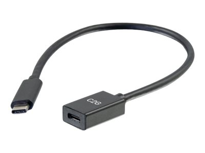 C2G 1ft USB-C to C 3.1 (Gen 1) Male to Female Extension Cable (5Gbps) - USB-förlängningskabel - 24 pin USB-C (hane) till 24 pin USB-C (hona) - USB 3.1 Gen 1 / Thunderbolt 3 - 3 A - 30 cm - formpressad - svart 88655