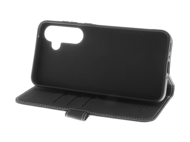 Insmat Exclusive - Baksidesskydd för mobiltelefon - genuint läder, kartong+papper+aluminiumfolie, termoplastisk polyuretan (TPU), bomullssömmar - svart - för Samsung Galaxy A35 650-3230