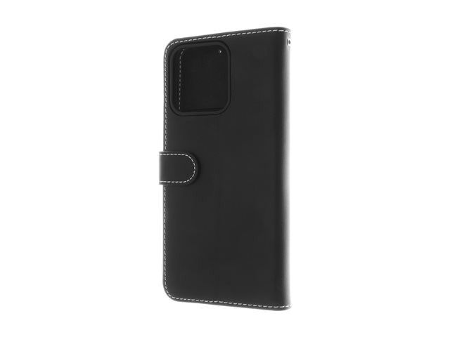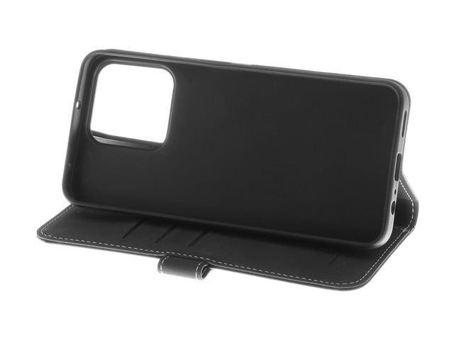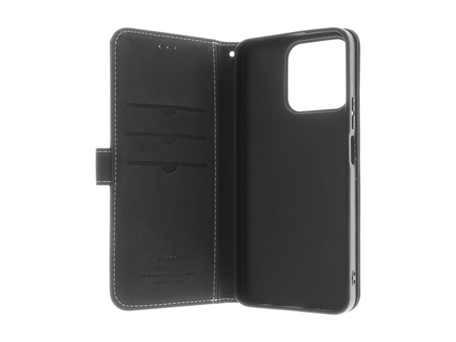 Insmat - Vikbart fodral för mobiltelefon - genuint läder, kartong+papper+aluminiumfolie, polykarbonat (PC), bomullssömmar - svart - för Honor 200 Smart 650-3306