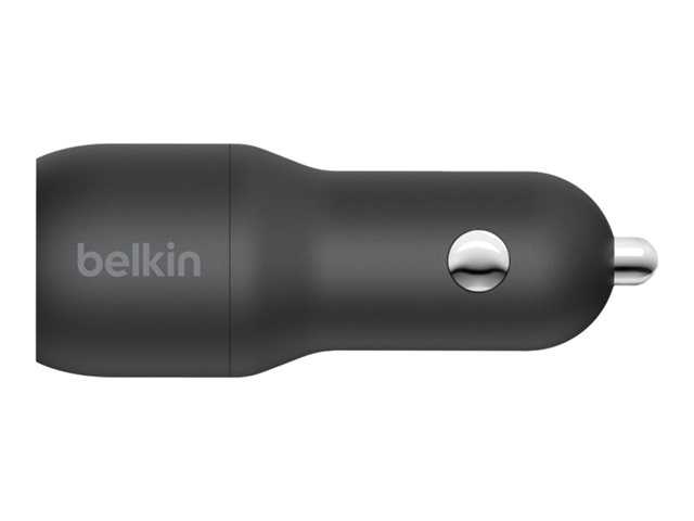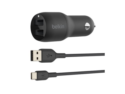 Belkin BoostCharge Dual Charger - Strömadapter för bil - 24 Watt - 4.8 A - 2 utdatakontakter (USB) - på kabel: USB-C - svart