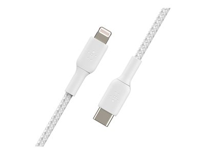Belkin BoostCharge - Lightning-kabel - 24 pin USB-C hane till Lightning hane - 1 m - vit - USB-strömförsörjning (18W)