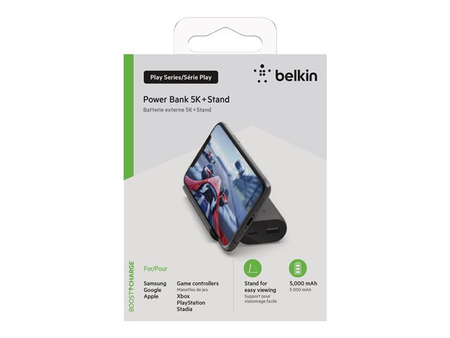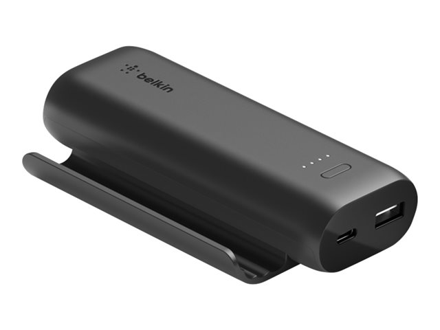 Belkin BoostCharge - Play Series - power bank - 5000 mAh - 12 Watt - 2 utdatakontakter (USB, USB-C) - på kabel: USB-C - svart BPZ001BTBK