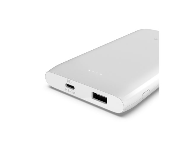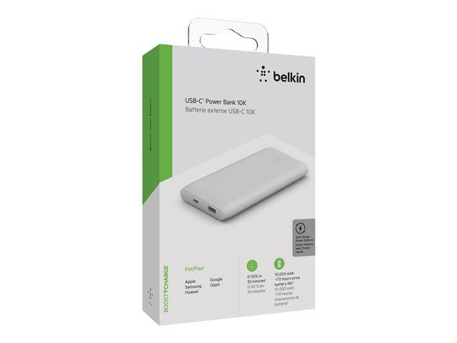 Belkin BoostCharge - Power bank - 10000 mAh - 18 Watt - Fast Charge, PD - 2 utdatakontakter (USB, USB-C) - vit BPB001BTWH