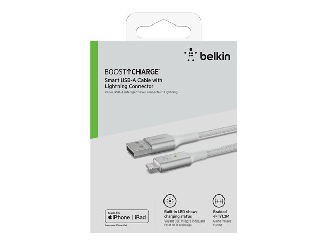 Belkin BoostCharge Smart - Lightning-kabel - USB hane till Lightning hane - 1.2 m - vit