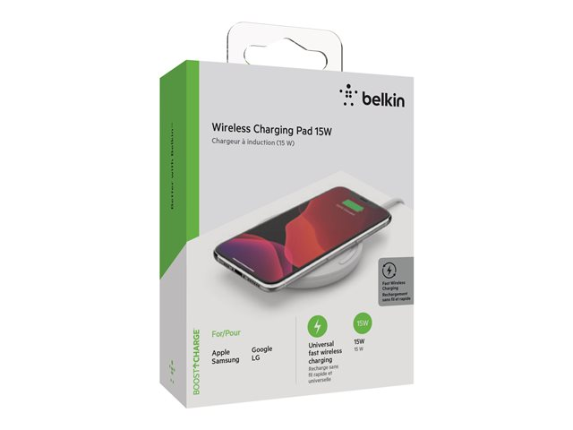 Belkin BoostCharge - Trådlös laddningsplatta + växelströmsadapter - 15 Watt - QC 3.0 - vit