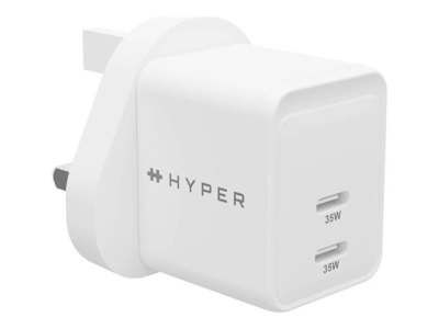 HyperJuice - Strömadapter - GaN - 35 Watt - QC 3.0, Power Delivery 3.0 + PPS - 2 utdatakontakter (USB-C) - vit - Storbritannien