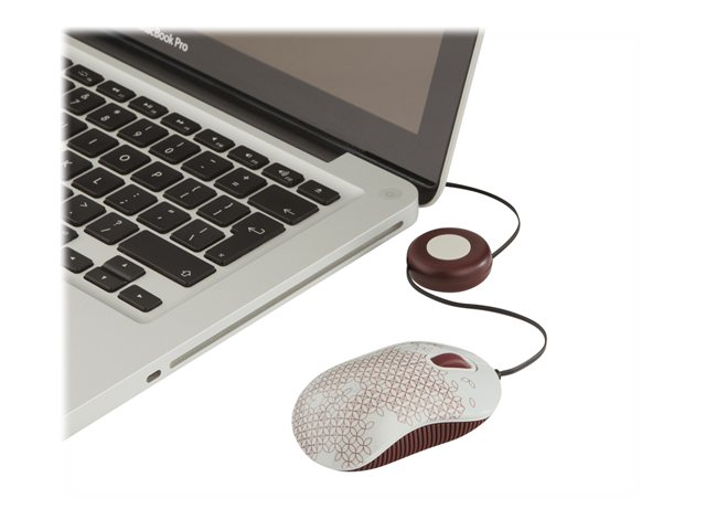 Targus Compact Laptop - Mus - höger- och vänsterhänta - optisk - 3 knappar - kabelansluten - USB - vit, röd