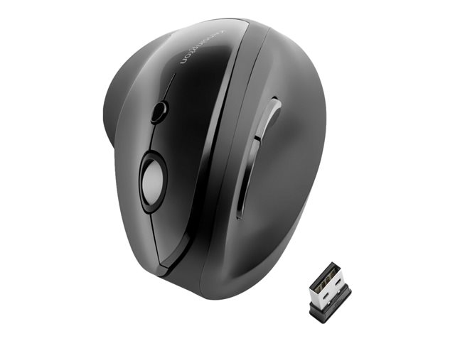 Kensington Pro Fit Ergo Vertical Wireless Mouse - Vertikal mus - ergonomisk - högerhänt - 6 knappar - trådlös - 2.4 GHz - trådlös USB-mottagare - svart
