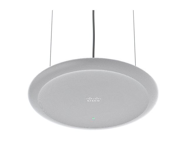 The Cisco Ceiling Microphone Pro is designed for seamless integration in conference settings, delivering clear audio through its adaptive beamforming technology. With a frequency response range of 120 - 20,000 Hz and a signal-to-noise ratio of 70 dB, this microphone ensures crisp sound quality, making it suitable for meetings and presentations. It features AI noise cancelling capabilities, allowing for effective noise reduction and enhancing the focus on voice during discussions.