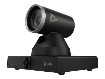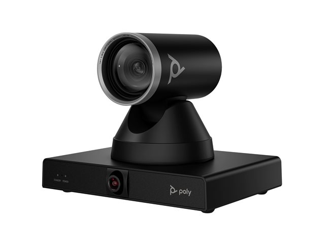 EgenskaperMotoriserad panna, motoriserad lutning, motoriserad zoomning, dubbel lins, 71° horizontal field of view (PTZ camera), 107° horizontal field of view (panoramic camera), 42.7° diagonal field of view (PTZ camera), up to 8 m camera range, Group framing, presentatörsspårning, Poly DirectorAI-teknik