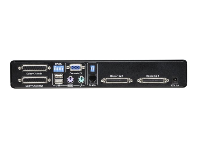 | Gränssnitt | 4 x KVM 50 pin Centronics 2 x stackenhet för nätverk DB-25 1 x RJ-11 hantering 1 x tangentbord (PS/2) 1 x mus (PS/2) 1 x tangentbord (USB) Type A 1 x mus (USB) Type A 1 x VGA HD-15 |