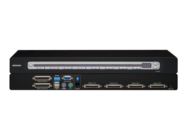 | Gränssnitt | 8 x KVM 50 pin Centronics 2 x stackenhet för nätverk DB-25 1 x RJ-11 hantering 1 x tangentbord (PS/2) 1 x mus (PS/2) 1 x tangentbord (USB) Type A 1 x mus (USB) Type A 1 x VGA HD-15 |