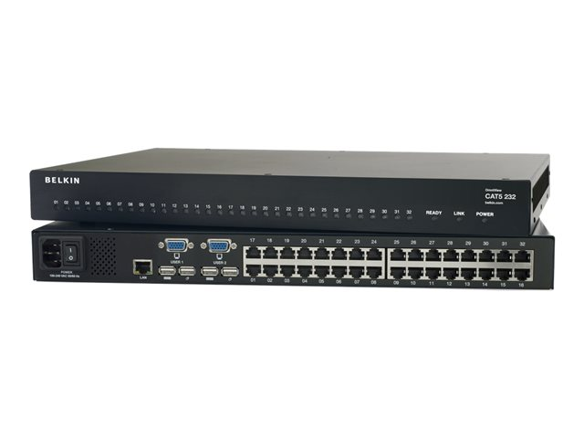 The OmniView Cat 5 232 KVM Switch enables two IT administrators to monitor and control their servers simultaneously. The KVM Switch provides reduced cable clutter and extended reach for up to 32 servers. The Cat 5 KVM Switch extends the distance between the server and Switch to up to 100 ft. Server Interface Modules (SIMs) are available for PS/2, USB, and Legacy Sun servers. One SIM is required per server connected to the SMB Cat 5 KVM Switch.