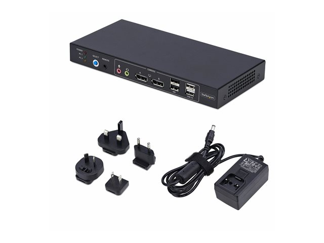 StarTech.com 2-Port Dual-Monitor DP KVM Switch w/Video Matrix, 4K 60Hz - Omkopplare för tangentbord/video/mus/ljud/USB - 2 x KVM/ljud/USB - 1 lokal användare - skrivbordsmodell - TAA-kompatibel