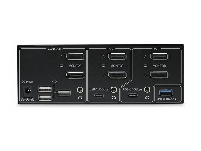 StarTech.com 2-Port Dual-Monitor DisplayPort KVM Switch, 8K 60Hz / 4K 144Hz, DP 1.4, 2x USB 10Gbps Ports, 4x USB HID Ports, Hotkey Switching, TAA Compliant - Omkopplare för tangentbord/video/mus/ljud/USB - 2 x KVM/ljud/USB - 1 lokal användare - skrivbordsmodell - TAA-kompatibel