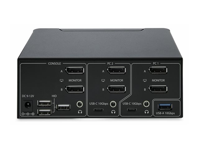 | Gränssnitt | 2 x DisplayPort-utgång konsol 2 x USB 3.2 Gen 2 Type A konsol 4 x USB 1.1 Type A konsol 1 x ljudutmatning mini-jack konsol 4 x DisplayPort-ingång värd 2 x ljud mini-jack värd 2 x USB 3.2 Gen 2 Type C värd |