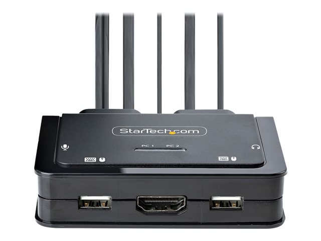 StarTech.com 2-Port Hybrid USB-C HDMI Cable KVM Switch, 4K 60Hz, Compact KVM with 6ft/1.8m USB-A/HDMI/Audio & 4ft/1.2m USB-C Integrated Host Cables, Bus Powered - Remote Push Button/Hotkey Switching (C2-H46-UAC-CBL-KVM) - Omkopplare för tangentbord/video/mus/ljud/USB - kompakt - 2 x KVM/ljud/USB - 1 lokal användare - skrivbordsmodell