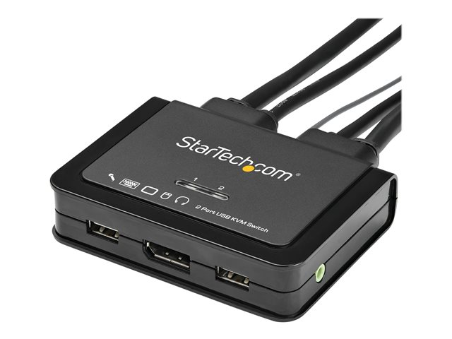 StarTech.com 2 Port USB 4K60Hz DisplayPort KVM-switch med inbyggda kablar - Omkopplare för tangentbord/video/mus/ljud - 2 x KVM/ljud - skrivbordsmodell