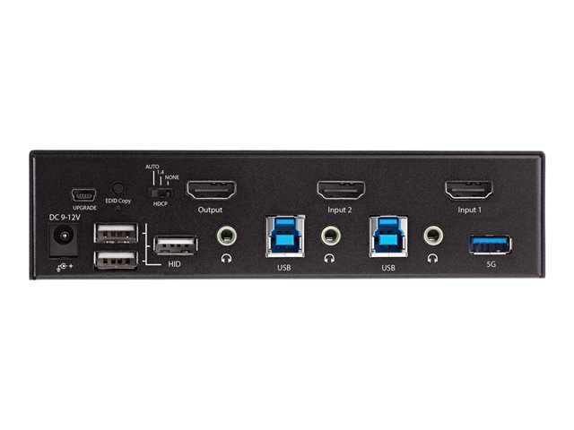 StarTech.com 2-ports HDMI KVM-switch - En skärm 4K 60 Hz Ultra HD HDR - Desktop HDMI 2.0 KVM-switch med 2 portar USB 3.0-hubb (5 Gbit/s) och 4x USB 2.0 HID, ljud - Snabbtangenter för omkoppling - TAA - Omkopplare för tangentbord/video/mus/ljud - 2 x KVM/ljud - 1 lokal användare - skrivbordsmodell, rackmonterbar - TAA-kompatibel