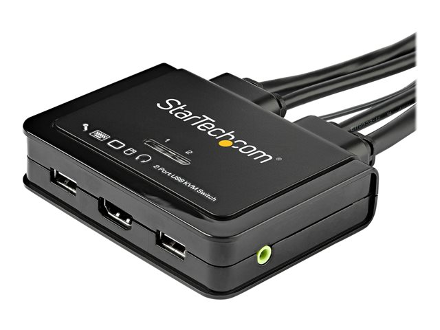 SV211HDUA4K 2-Port 4K60Hz HDMI-kabel KVM-switch med ljud- och fjärrswitchkontroll ger dig kontroll över två datorer utrustade med HDMI och USB med en enkel bildskärm, tangentbord, mus och ljudutrustning. 4K60 Bild och full ljudsupport Den dubbla HDMI KVM-switchen stöder upplösningar på upp till 4K vid 60 Hz och kan enkelt driva en stor HDMI-skärm för maximal visningsyta. Med stöd för separat 3,5 mm stereoljud ger KVM-omkopplaren full ljudkompatibilitet över anslutna datorer. Operativsystemsoberoende Medan de stödjer de flesta operativsystem för PC är denna HDMI KVM-switch OS-oberoende, vilket innebär att den fungerar med Mac-datorer (en adapter kan behövas) och alla andra bärbara datorer och surfplattor. Liknande användning Strömställaren har en fjärrknapp på en 1,5 meter integrerad kabel som kan placeras på en lättillgänglig plats, samt snabbtangenter för tangentbord och PC eller Mac -kompatibel programvara för att växla mellan systemen. StarTech.com KVM-switchar och konsoler StarTech.com erbjuder ett brett utbud av högkvalitativa KVM-switchar och KVM-relaterade produkter som hjälper dig att få åtkomst till dina system effektivare utan kostnaden och trasslet med extra tangentbord, möss och skärmar. SV211HDUA4K täcks av StarTech.coms 2-årsgaranti och gratis livstidsgaranti på teknisk support.