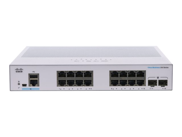 Cisco Business 350 Series CBS350-16T-2G - Switch - L3 - Administrerad - 16 x 10/100/1000 + 2 x Gigabit SFP - rackmonterbar