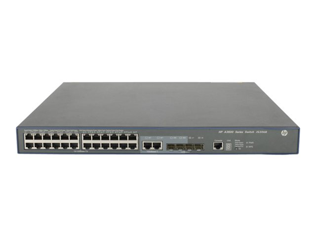 HPE 3600-24-PoE+ v2 SI - Switch - Administrerad - 24 x 10/100 (PoE+) + 4 x Gigabit SFP + 2 x delad 10/100/1000 - rackmonterbar - PoE+ (720 W) JG306B