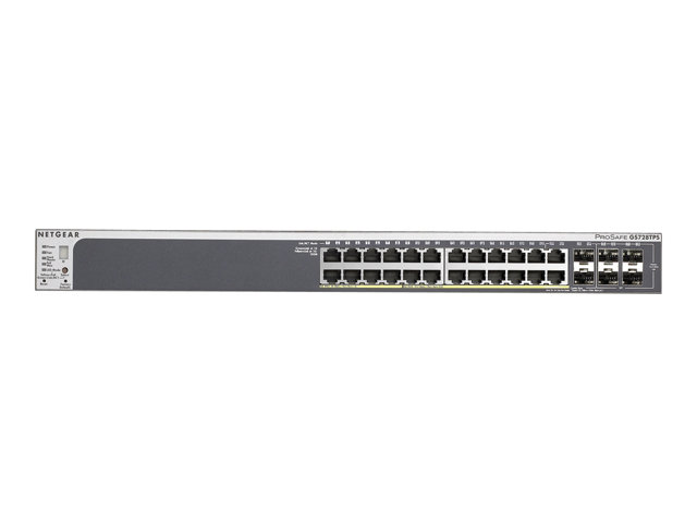 NETGEAR GS728TPS (2nd Generation) - Switch - Administrerad - 16 x 10/100/1000 (PoE) + 8 x 10/100/1000 (PoE+) + 4 x Gigabit SFP - skrivbordsmodell, rackmonterbar - PoE
