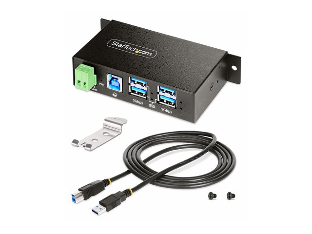StarTech.com 4-Port Managed USB Hub with 4x USB-A, Heavy Duty with Metal Industrial Housing, ESD & Surge Protection, Wall/Desk/Din-Rail Mountable, USB 3.0/3.1/3.2 Gen 1 5Gbps - Hubb - 3 x USB 3.2 Gen 2 + 1 x USB 3.2 Gen 1 - skrivbordsmodell, DIN-skenmonterbar, väggmonterbar - TAA-kompatibel