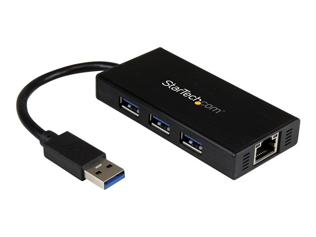 StarTech.com Bärbar USB 3.0-hubb med 3 portar plus Gigabit Ethernet - aluminium med inbyggd kabel - Hubb - 3 x SuperSpeed USB 3.0 + 1 x 10/100/1000 - skrivbordsmodell - för P/N: PEXUSB3S2EI, PEXUSB3S42, PEXUSB3S7, SVA5H2NEUA