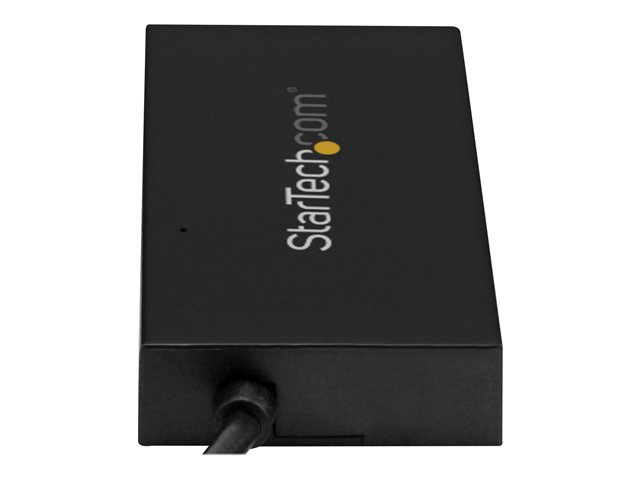 Här är ett enkelt sätt att ansluta ett större utbud av tillägg till din bärbara dator. Denna USB 3.0-hubb med 4 portar gör om din bärbara dators USB-A-port till tre USB-A-portar (5 Gbps) och en USB-C-port. Hubben är USB-driven så att du kan ansluta enheter i stort sett var du än arbetar.
