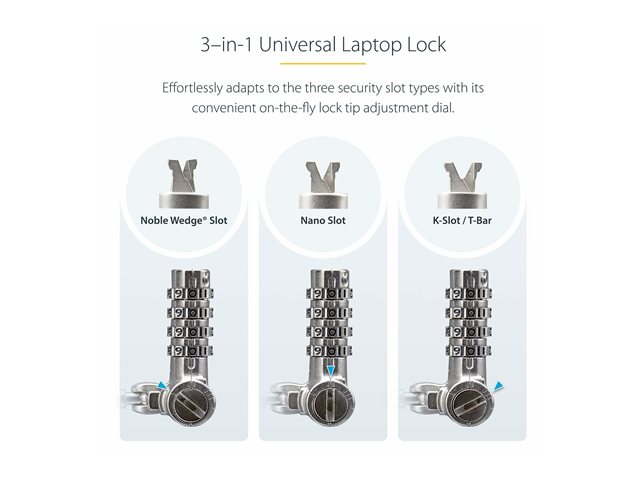 StarTech.com 25-Pack Laptop Lock, Compatible w/Noble Wedge/Nano/K-Slot - Lås för säkerhetskabel - svart, silver - 2 m - TAA-kompatibel (paket om 25)
