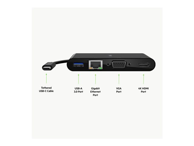 Belkin - Multimedia- och laddningsadapter - USB-C - VGA, HDMI - 1GbE