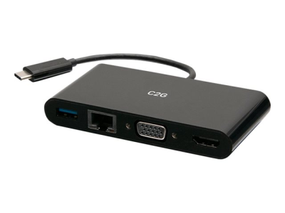 C2G USB C to HDMI, VGA, USB A, Ethernet Adapter - 4K 30Hz - Black - Dockningsstation - USB-C / Thunderbolt 3 - HDMI, VGA - 1GbE