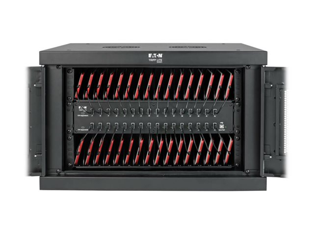 Eaton Tripp Lite Series 32-Device USB Charging Station Cabinet with Sync for Smartphones, Wall Mount and Desktop Options, 230V, Schuko CEE7 to C13 Plug, Black - Laddare för flera enheter skåp - med kretsbrytare - på bord, väggmontering - svart - för P/N: M100-10N-BK, M100-10N-BK-10, SRXFANWM, U326-001-BK