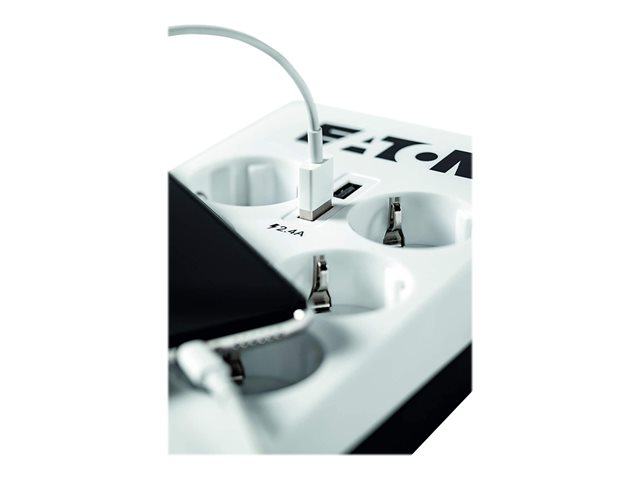 Eaton Protection Box 6 USB Tel@ Din - Överspänningsskydd - Växelström 220-250 V - 2500 Watt - utgångskontakter: 6 - vit PB6TUD